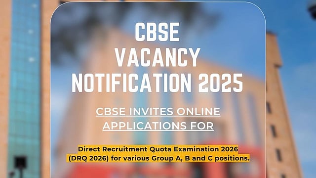 കേന്ദ്ര വിദ്യാഭ്യാസ മന്ത്രാലയത്തിന് കീഴിൽ പ്രവർത്തിക്കുന്ന സെൻട്രൽ ബോർഡ് ഓഫ് സെക്കൻഡറി എജ്യുക്കേഷൻ (സി ബി എസ് ഇ) വിവിധ തസ്തികയിൽ നിയമനം നടത്തുന്നു. ഗ്രൂപ്പ് എ,ബി,സി ക്യാറ്റഗറികളിലായി 120 ഒഴിവുകൾ ആണ് റിപ്പോർട്ട് ചെയ്തിരിക്കുന്നത്. പന്ത്രണ്ടാം ക്ലാസ് മുതൽ ബിരുദാനന്തര ബിരുദധാരികൾ വരെയുള്ള ഉദ്യോഗാർത്ഥികൾക്ക് ആണ് അവസരം.