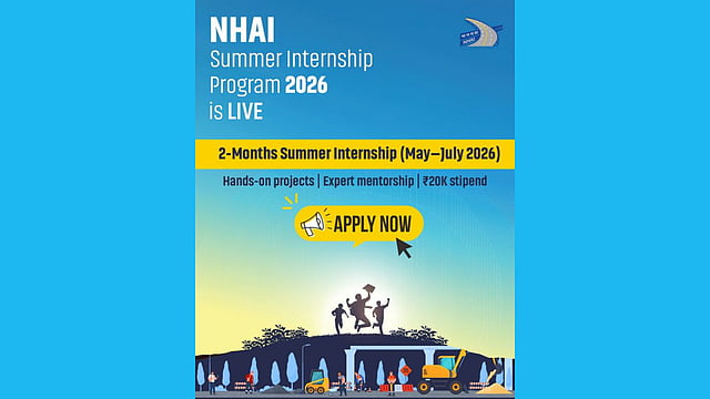 നാഷണൽ ഹൈവേ അതോറിറ്റി ഓഫ് ഇന്ത്യ (NHAI) ദേശീയതലത്തിൽ വിവിധ പ്രദേശങ്ങളിൽ നടക്കുന്ന പ്രോജക്ടുകളിലേക്ക് ഇന്റേൺഷിപ്പ് പ്രോഗ്രാമിന് അപേക്ഷ ക്ഷണിച്ചു. രണ്ട് മാസത്തെ സമ്മർ ഇന്റേൺഷിപ്പ് പ്രോഗ്രാമിന് ആണ് അപേക്ഷ ക്ഷണിച്ചിട്ടുള്ളത്.