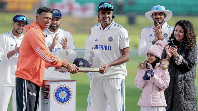 അശ്വിന് ദ്രാവിഡ് ഉപഹാരം സമ്മാനിച്ചപ്പോൾ    എഎൻഐ