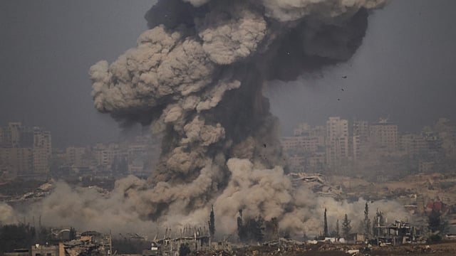 വടക്കൻ ഗാസ മുനമ്പിൽ ഇസ്രായേലി സൈന്യം നടത്തിയ ബോംബാക്രമണത്തെ തുടർന്ന് ആകാശത്തേക്ക് പുക ഉയരുന്നു pti