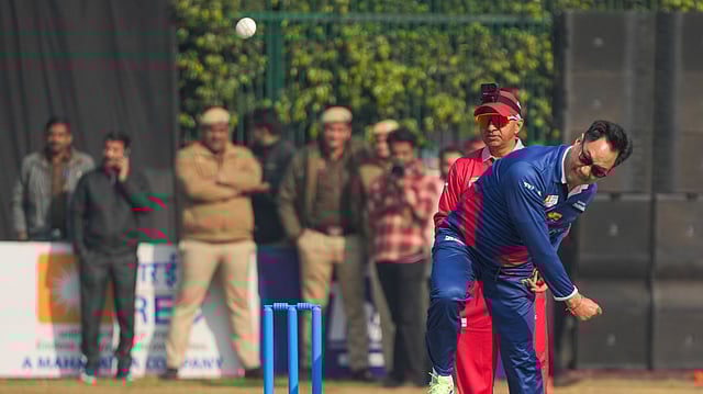 രാജ്യസഭാ ചെയർമാൻ ഇലവൻ ടീമിനായി ബൗൾ ചെയ്യുന്ന കേന്ദ്ര മന്ത്രി കിരൺ റിജിജു എപി