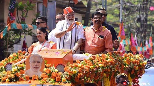 പാലക്കാടെ റോഡ് ഷോയില് പാര്ട്ടി പ്രവര്ത്തകരെ അഭിവാദ്യം ചെയ്യുന്ന പ്രധാനമന്ത്രി