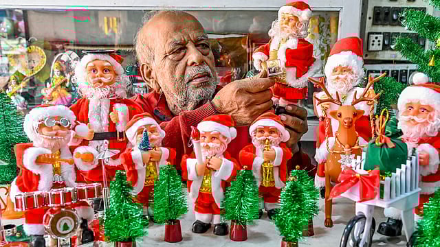 ലോകം ക്രിസ്മസിനെ വരവേൽക്കാനുള്ള ഒരുക്കത്തിലാണ്. സാന്താക്ലോസിന്റെ പ്രതിമകൾ വിൽക്കുന്ന കടക്കാരൻ. ബംഗാളിലെ നാദിയയിൽ നിന്നുള്ള ചിത്രം പിടിഐ