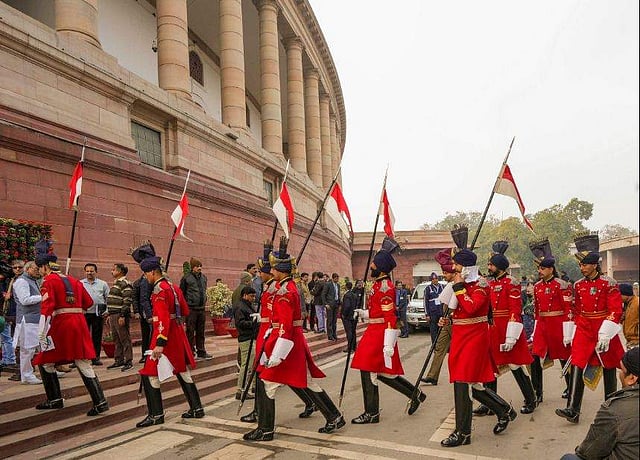 ബജറ്റ് സമ്മേളനത്തിൻറെ ആദ്യ ദിവസം പാർലമെന്റ് ഹൗസിൽ രാഷ്ട്രപതിയുടെ അംഗരക്ഷകർ/ ചിത്രം: പിടിഐ