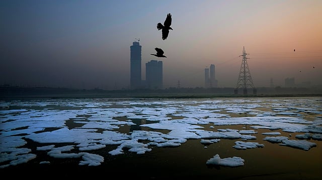 വിഷപ്പത നിറഞ്ഞ യമുനാ നദിക്കരയില് തീ കായുന്നവര്