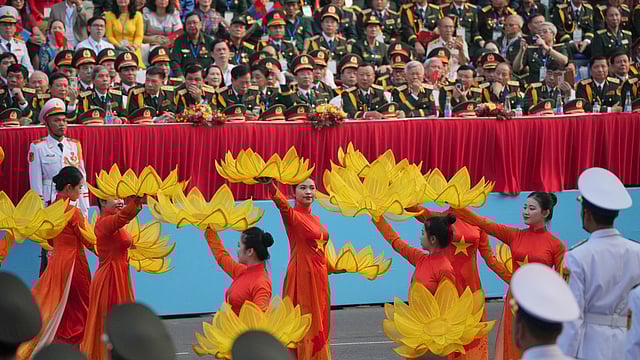 വിയറ്റ്നാമീസ് വിപ്ലവ നേതാവ് ഹോചിമിന്റെ ഛായാചിത്രവുമായി ഫ്ലോട്ട്