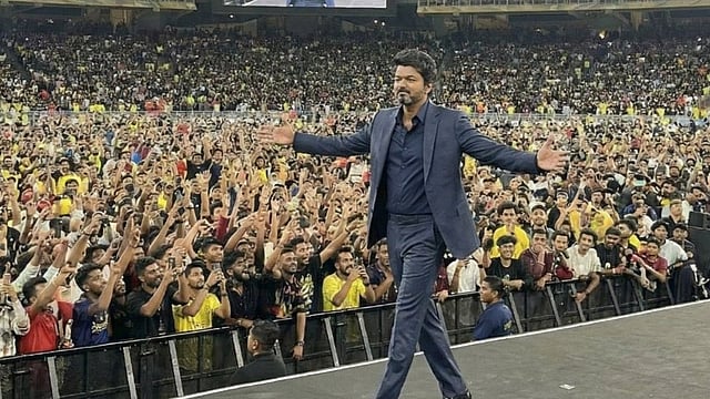 'കുട്ടി സ്റ്റോറി' പറഞ്ഞും 'ദളപതി കച്ചേരി' പാട്ടിന് ചുവടുവെച്ചും ആരാധകർക്കൊപ്പം സെൽഫി വിഡിയോ ചിത്രീകരിച്ചുമൊക്കെയാണ് വിജയ് ആരാധകർക്കൊപ്പം സന്തോഷം പങ്കുവച്ചത്. എച്ച് വിനോദ് സംവിധാനം ചെയ്യുന്ന ചിത്രം ജനുവരി 9 നാണ് റിലീസിനെത്തുക. വിജയ്ക്കൊപ്പം വമ്പൻ താരനിരയും ചിത്രത്തിൽ അണിനിരക്കുന്നുണ്ട്. അനിരുദ്ധ് രവിചന്ദർ ആണ് ചിത്രത്തിന് സംഗീതമൊരുക്കുന്നത്.പൂജ ഹെഗ്ഡെയാണ് ചിത്രത്തിലെ നായിക.Vijay starrer Jana Nayagan audio launch photos.