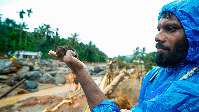 ഉരുൾപൊട്ടലിൽ നിന്ന് രക്ഷപ്പെടുത്തിയ അണ്ണാൻ കുഞ്ഞിനെ കൈയ്യിലെടുത്ത് രക്ഷാപ്രവർത്തകൻ എപി