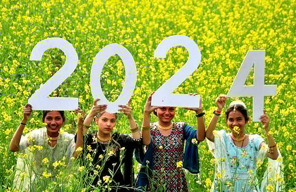 മൊറാദാബാദിലെ സ്കൂൾ വിദ്യാർഥികൾ ന്യൂ ഇയർ ആഘോഷത്തിൽ/ പിടിഐ