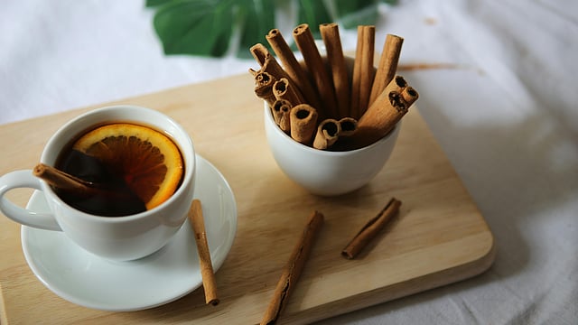 രുചിക്ക് വേണ്ടി മാത്രമല്ല, ഒരു പ്രകൃതദത്ത ആന്റിഓക്സിഡന്റ് കൂടിയാണ്. കാപ്പിയിൽ അര ടീസ്പൂൺ കറുവപ്പട്ട പൊടിച്ചത് ചേർക്കിന്നത് ശരീര വീക്കം കുറയ്ക്കാനും രക്തത്തിലെ പഞ്ചസാരയുടെ അളവു സന്തുലിതമാക്കാനും ഹൃദയാരോഗ്യം മെച്ചപ്പെടുത്താനും സഹായിക്കും. കറുവപ്പട്ടയുടെ രുചി കാപ്പി കൂടുതൽ ആസ്വാദ്യകരമാക്കുകയും ചെയ്യുന്നു.