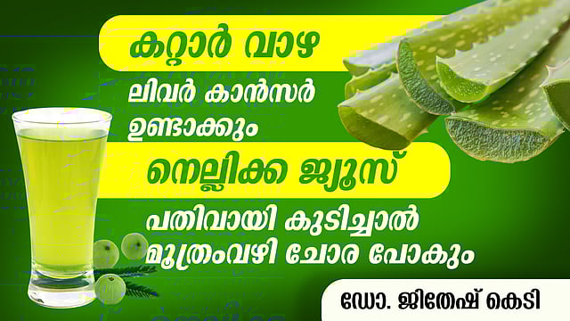 ഞാൻ തുടർന്നു - " ഇപ്പോൾ നിങ്ങൾ യൂട്യൂബിൽ വെറുതെ സെർച്ച് ചെയ്താൽ കറ്റാർവാഴ ജ്യൂസ് പ്രമേഹത്തിന്, കൊളസ്ട്രോളിനൊക്കെ നല്ലതാണെന്ന് പറയുന്ന ഒരു 10 - 20 വീഡിയോ കണ്ടേക്കും... ഒരു ആറുമാസമെങ്കിലും ഉപയോഗിച്ചാൽ തന്നെ ലിവർ കാൻസർ വരും എന്ന് എല്ലാ രീതിയിലും തെളിയിക്കപ്പെട്ട സാധനമാണ് കറ്റാർവാഴ ജ്യൂസ്. അതിലുള്ള 'Aloin' ആണ് പ്രശ്നക്കാരൻ. അതുകൊണ്ടാണ് ലോകത്ത് പലയിടത്തും ഉള്ളിൽ കഴിക്കുന്ന അലോവേര പ്രിപ്പറേഷൻസ് എല്ലാം നിരോധിച്ചത്.നെല്ലിക്കാ ജ്യൂസിന്റെ കാര്യവും അങ്ങനെതന്നെ."