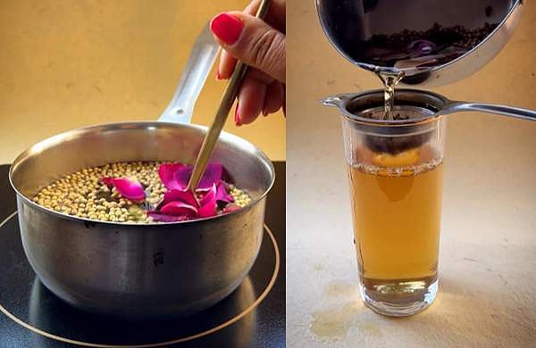 മല്ലി, റോസാപ്പൂവിന്റെ ഇതളുകള്, കറിവേപ്പില എന്നീ മൂന്ന് ചേരുവകള് ഉപയോഗിച്ചാണ് ഈ പാനീയം തയ്യാറാക്കുന്നത്. വെള്ളം ചൂടാക്കി അതിലേക്ക് മല്ലിയും റോസാപ്പൂവിന്റെ ഇതളുകളും കറിവേപ്പിലയും ഇട്ട് തിളപ്പിച്ചെടുത്താല് സംഭവം റെഡി. അരിച്ചെടുത്ത് ഗ്രീന് ടീ പോലെ കുടിക്കാം.