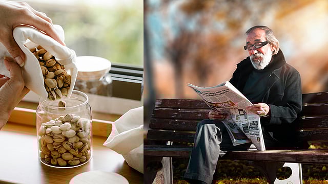 എന്നാല് പ്രായമാകുമ്പോള് മാക്യുലാര് പിഗ്മെന്റിന്റെ അളവു കുറയുകയും കാഴ്ചാ പ്രശ്നങ്ങള് നേരിടുകയും ചെയ്യുന്നു. അടുത്തിടെ ടഫ്റ്റ്സ് സര്വകലാശാലയിലെ ഡോ. ടാമി സ്കോട്ട് നടത്തിയ പഠനത്തില് ദിവസവും രണ്ട് ഔണ്സ് വീതം പിസ്ത കഴിക്കുന്നത് പ്രായമാകുന്നതിനെ തുടര്ന്നുണ്ടാകുന്ന കാഴ്ചപ്രശ്നങ്ങളുടെ അപകട സാധ്യത കുറയ്ക്കാനാകുമെന്ന് കണ്ടെത്തി.