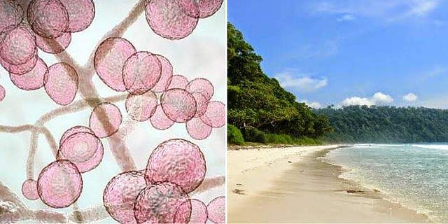 എന്നാൽ ആൻഡമാൻ ദ്വീപുകളിൽ ഇവ എങ്ങനെയെത്തിയെന്ന ചോദ്യത്തിനു വ്യക്തമായ ഉത്തരമായിട്ടില്ല. ബീച്ചിൽ നിന്നു കണ്ടെത്തിയ ഫംഗസ് സ്ട്രെയിനുകൾ അവിടെ സന്ദർശിച്ച വിനോദസഞ്ചാരികളിൽ നിന്നു എത്തിയതാകാമെന്നും മനുഷ്യവാസമില്ലാത്ത തീരത്ത് കണ്ടെത്തിയവ ബീച്ചിൽ നിന്ന് കടൽവെള്ളത്തിൽ ഒഴുകി അവിടെയെത്തിയതാകാമെന്നുമാണ് ശാസ്ത്രജ്ഞരുടെ നിഗമനം.