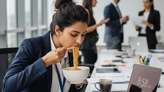 രാവിലെ ഓഫീസിലെത്തിയാൽ പിന്നെ വൈകുന്നേരം വരെ തിരക്കായിരിക്കും. അതിനിടെ ഭക്ഷണക്കാര്യമൊക്കെ കണക്കായിരിക്കും. ഇങ്ങനെ തിരക്കിട്ട ജീവിതരീതി റെഡിമെയ്ഡ് ഭക്ഷണത്തിലേക്ക് നമ്മളെ കൊണ്ടെത്തിക്കും. ഇത് ഉയര്ന്ന കലോറി ശരീരത്തിലെത്തുന്നതിനും അതുമായി ബന്ധപ്പെട്ട നിരവധി ആരോഗ്യപ്രശ്നങ്ങള് ഉണ്ടാകാനും കാരണമാകും. ഇത്തരം ഭക്ഷണരീതി ഉല്പ്പാദനക്ഷമതയെയും ബാധിക്കും.