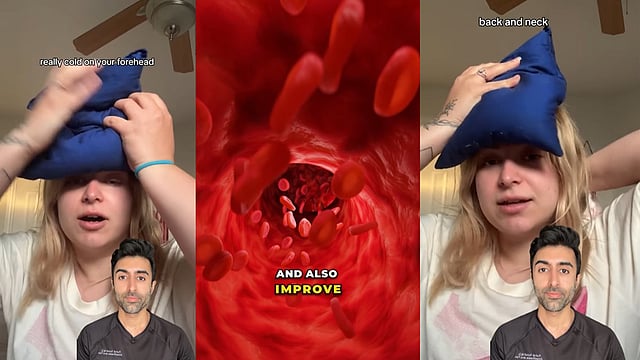 മൈഗ്രേനെ തുടർന്നുണ്ടാകുന്ന അതികഠിനമായ വേദന ഒഴിവാക്കാൻ ഇത്തരത്തിൽ തണുത്ത തൂവാല തലയിൽ വെക്കുന്നത് സഹായകരമാണെന്ന് ന്യൂറോളജിസ്റ്റ് ഡോ. കുനാൽ സൂദ് മറ്റൊരു വിഡിയോയിൽ വിശദീകരിക്കുന്നു. അതോടൊപ്പം തന്നെ ചൂടുള്ള തൂവാല കഴുത്തിന് പിന്നിൽ വെയ്ക്കുന്നത് പേശികളെ വിശ്രമിക്കാൻ അനുവദിക്കുകയും രക്തചംക്രമണം മെച്ചപ്പെടുത്താനും സഹായിക്കുന്നുവെന്ന് അദ്ദേഹം പറയുന്നു. ഇത് ഓക്സിജൻ വിതരണം വർധിപ്പിക്കും.