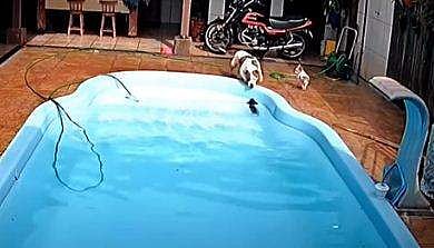 വീട്ടിനകത്തെ സ്വിമ്മിങ് പൂളിനടുത്ത് കളിക്കുകയായിരുന്നു മൂന്ന് നായ്ക്കുട്ടികള്. കളിക്കിടെയാണ് അവയിലൊന്ന് സ്വിമ്മിങ് പൂളിലേക്ക് തെന്നി വീണത്. വെള്ളത്തില് മുങ്ങിയ നായ്ക്കുട്ടി ജീവനു വേണ്ടി പിടയുന്നതു കണ്ട് മറ്റു നായ്ക്കുട്ടികള് ഇതോടെ ഉച്ചത്തില് കുരയ്ക്കാന് തുടങ്ങി. ഇതോടെ കോണി ഇറങ്ങിയെത്തിയ വലിയ നായ വെള്ളത്തിലേക്ക് ചാടി നായ്ക്കുട്ടിയെ രക്ഷപ്പെടുത്തി.