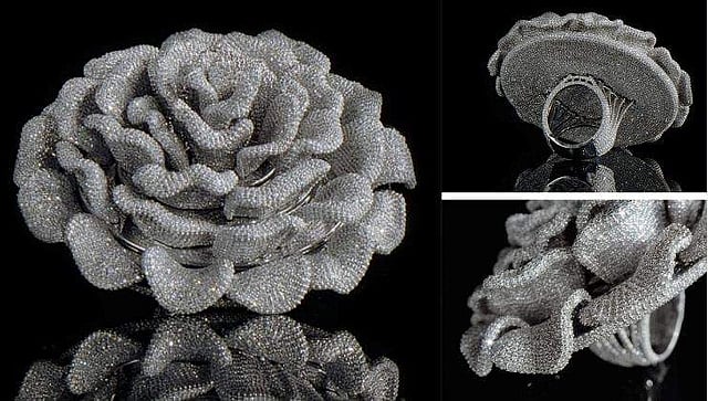 കോഴിക്കോട്; ലോകത്തില് ഏറ്റവും കൂടുതല് വജ്രക്കല്ലുകള് പതിപ്പിച്ച മോതിരമെന്ന റെക്കോര്ഡ് ഇന്ത്യയില് നിന്നുള്ള സ്വാ ഡയമണ്ട്സിന്. ഗിന്നസ് വേള്ഡ് റെക്കോര്ഡ്സ്, ഏഷ്യന് ബുക്ക് ഓഫ് റെക്കോർഡ്സ് തുടങ്ങി ലോകത്തെ സുപ്രധാന ബഹുമതികളാണ് കേരളത്തിലെ മലപ്പുറത്തു രൂപകല്പ്പന ചെയ്ത വജ്രമോതിരം കരസ്ഥമാക്കിയത്. 24679 പ്രകൃതിദത്ത വജ്രക്കല്ലുകള് പതിപ്പിച്ച പിങ്ക് ഓയിസ്റ്റർ മഷ്റൂമിന്റെ മാതൃകയിലുള്ള ദി ടച്ച് ഓഫ് ആമി എന്ന മോതിരത്തിനാണ് ആഗോള ബഹുമതി ലഭിച്ചിരിക്കുന്നത്.
