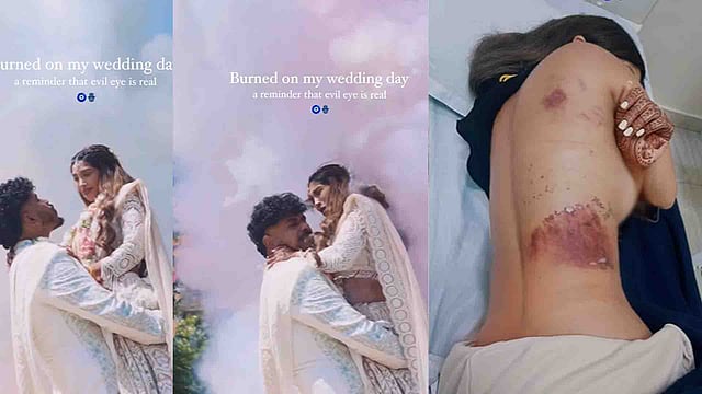 വരന് വധുവിനെ എടുത്ത് പൊക്കുന്നതിന്റെ പിന്നിലാണ് കളര് ബോംബ് പൊട്ടിച്ചത്. ഇതാണ് പൊട്ടിത്തെറിച്ച് പൊള്ളലേറ്റത്. മുടി കത്തിപ്പോവുകയും പുറംഭാഗത്ത് പൊള്ളലേല്ക്കുകയും ചെയ്തു. ഇതിന്റെ വിഡിയോ ഇന്സ്റ്റഗ്രാമില് ഷെയര് ചെയ്തിട്ടുണ്ട്. എന്നാല് സംഭവം നടന്നതെവിടെയെന്ന് പോസ്റ്റില് വ്യക്തമല്ല.