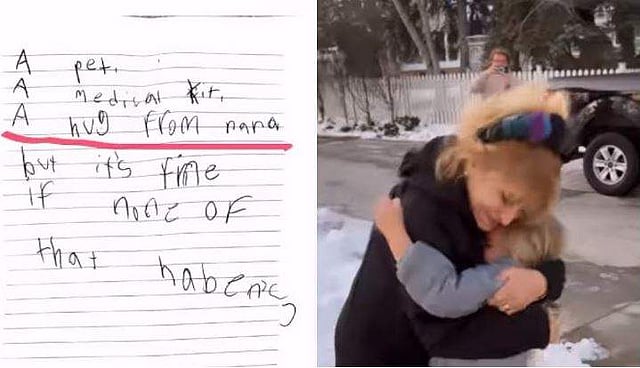 പെണ്കുട്ടി അവളുടെ മുത്തശ്ശിയെ കണ്ടുമുട്ടുന്ന വിഡിയോയ്ക്കൊപ്പമാണ് ഈ ക്യൂട്ട് ആഗ്രഹത്തെക്കുറിച്ച് വിശദീകരിച്ചിരിക്കുന്നത്. കുട്ടിയുടെ അമ്മ അമേലിയ ജോണ്സിന്റെ ഇന്സ്റ്റഗ്രാം പോസ്റ്റാണ് വൈറലായത്. പെണ്കുട്ടി എഴുതിയ വിഷ് ലിസ്റ്റിന്റെ ഒരു ഫോട്ടോയും പോസ്റ്റില് ചേര്ത്തിട്ടുണ്ട്. ഒരു വളര്ത്തുമൃഗത്തെ വേണം, മെഡിക്കല് കിറ്റ് വേണം, മുത്തശ്ശിയുടെ കെട്ടിപ്പിടിച്ചൊരു ഉമ്മ വേണം എന്നിങ്ങനെയായിരുന്നു ലിസ്റ്റില് കുറിച്ചിരുന്ന ആഗ്രഹങ്ങള്. ഇതൊന്നു നടന്നില്ലെങ്കിലും കുഴപ്പമില്ലെന്നും ആ കൊച്ചുകുട്ടി എഴുതിച്ചേര്ത്തിരുന്നു.