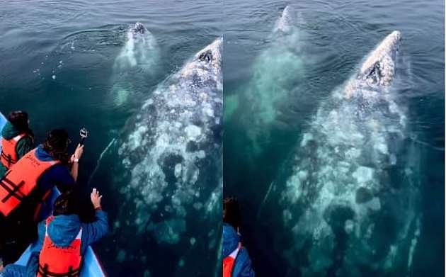 കൂറ്റൻ തിമിംഗലങ്ങൾ ഇവരുടെ ബോട്ടിന് അരികിലേക്ക് എത്തിയതാണ് ശ്രദ്ധേയമായത്. ഗ്രേ വിഭാഗത്തിൽപ്പെട്ട തിമിംഗലക്കൂട്ടമാണ് ബോട്ടിനരികിലെത്തിയത്. അത്യപൂർവ കാഴ്ച നേരിൽ കണ്ടപ്പോൾ ബോട്ടിലിരുന്ന പലരും അതിനെ കൈനീട്ടി തൊടാൻ ശ്രമിക്കുന്നത് ദൃശ്യങ്ങളിൽ കാണാം.