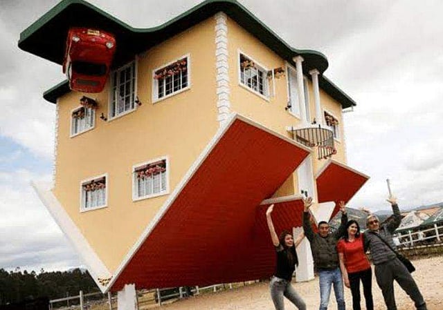 കൊളംബിയയുടെ തലസ്ഥാനമായ ബോഗോട്ടയിൽ നിന്നു 70 കിലോമീറ്റർ മാറി ഗുട്ടാവിത എന്ന സ്ഥലത്താണ് വാസ്തുകലാ വിസ്മയമെന്ന് അവകാശപ്പെടുന്ന തലകീഴായി നിൽക്കുന്ന പാർപ്പിടം. തലതിരിഞ്ഞ ഈ വീടിന്റെ  ഉപഞ്ജാതാവ് വീട്ടുടമസ്ഥനായ ഫ്രിറ്റ്സ് ഷാൽ ആണ്. ഓസ്ട്രിയക്കാരനായ ഇദ്ദേഹം 22 വർഷത്തോളമായി കുടുംബ സമേതം കൊളംബിയയിലാണ് താമസം.