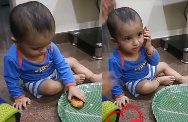 ഒരു പാത്രത്തിൽ കഴിക്കാൻ സ്നാക്സ് വെച്ചുകൊടുക്കുമ്പോൾ ഫോൺ ആണെന്ന് തെറ്റുദ്ധരിച്ച് ഭക്ഷണം നേരെ ചെവിയിലേക്ക് കൊണ്ടു പോകുന്ന ഒരു കൊച്ചുകുട്ടിയാണ് വിഡിയോയിൽ. ഈ കാഴ്ച കണ്ട് ചുറ്റും നിൽക്കുന്നവർ പൊട്ടിച്ചിരിക്കുന്നതും വിഡിയോയിൽ കാണാം. കണ്ടാൽ രസമെന്ന് തോന്നിയാലും കുട്ടികളിൽ മൊബൈൽ ഫോൺ ഉണ്ടാക്കുന്ന അപകടകരമായ ഒരു സ്വാധീനമാണ് ഇതെന്ന് ആളുകൾ പ്രതികരിച്ചു.
