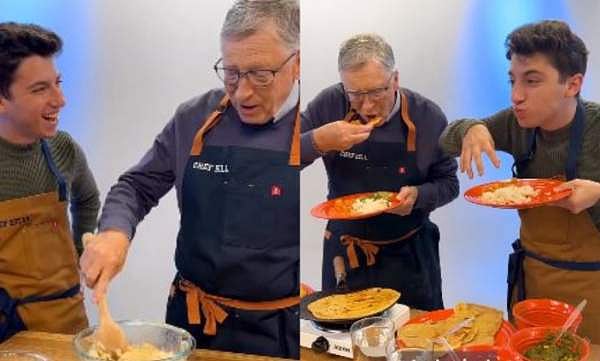 ഗോതമ്പ് കുഴയ്ക്കുന്നത് മുതൽ തവയിൽ റൊട്ടിയുണ്ടാക്കുന്നത് വരെ ഈഥനൊപ്പം ബിൽ ഗേറ്റ്സും കൂടി. പാചകത്തിനിടെ രസകരമായ ചില വർത്തമാനങ്ങളും ഇരുവരും നടത്തുന്നുണ്ട്.