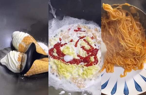 പാചകത്തില് ക്രിയേറ്റിവിറ്റി സ്ഥാനം പിടിച്ചതോടെ അമ്പരപ്പിക്കുന്ന കോമ്പിനേഷനുകളാണ് ഓരോ ദിവസവും സോഷ്യല് മീഡിയയില് വൈറലാകുന്നത്. ഇത്തരത്തില് ശ്രദ്ധനേടിയ പുതിയ വിഡിയോയാണ് നൂഡില്സില് കോണ് ഐസ്ക്രീം ചേര്ത്ത് തയ്യാറാക്കിയത്.