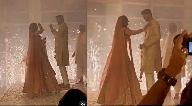 ‘വെഡ്ഡിങ് വയർ ഇന്ത്യ’ എന്ന ഇൻസ്റ്റഗ്രാം പേജിൽ പങ്കുവച്ച വിഡിയോ ഇതിനോടകം ശ്രദ്ധനേടിക്കഴിഞ്ഞു. പ്രിയങ്ക, റഹിൽ ഷാ എന്നിവരുടെ വിവാഹവേദിയിലാണ് രസകരമായ രം​ഗം അരങ്ങേറിയത്. രാത്രിയിലായിരുന്നു ഇവരുടെ വിവാഹം. വർണാഭമായ വേദിയിലെ ഇവരുടെ കുസൃതി ക്ഷക്കണക്കിന് കാഴച്ചക്കാരെ നേടിയിട്ടുണ്ട്.