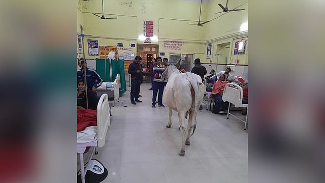 ഉത്തർപ്രദേശിലെ റായ്ബറേലിയയിലാണ് സംഭവം. ആശുപത്രി കിടപ്പുരോഗികളുടെ വാർഡിൽ നിലയുറപ്പിച്ച കാളയുടെ ചിത്രമാണ് ഇപ്പോൾ സോഷ്യൽമീഡിയയിൽ വൈറലാകുന്നത്. തെരുവിൽ അലഞ്ഞുതിരയുന്നതിനിടെ ആശുപത്രിയിലൊന്ന് കയറി കാര്യങ്ങളൊക്കെ ഒന്നു അന്വേഷിച്ചേക്കാം എന്ന മട്ടിലാണ് കാളയുടെ നിൽപ്പ്. ചുറ്റും രോഗികളും കൂട്ടിരിപ്പുകാരും കട്ടിലിൽ വിശ്രമിക്കുന്നത് കാണാം. കാള കുറച്ചു നേരം അവിടെ നിന്ന ശേഷം തിരിച്ചു പോവുകയും ചെയ്തു.