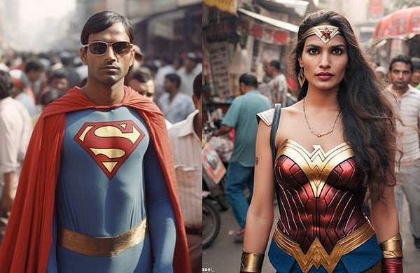 ലോകമെമ്പാടും ഇപ്പോൾ ആർട്ടിഫിഷ്യൽ ഇന്റലിജൻസ് തരംഗമാണ്. കലാകാരന്മാരുടെ ഭാവനയ്ക്കനുസരിച്ച് രൂപവും ഭാവവും മാറുന്ന കഥാപാത്രങ്ങൾ, പ്രദേശങ്ങൾ. ഡിസി സൂപ്പർഹീറോസായ സൂപ്പർമാനും ബാറ്റ് മാനും വണ്ടർവുമണുമൊക്കെ ഇന്ത്യയിൽ അവതരിച്ചാൽ എങ്ങനെ ഇരിക്കുമെന്ന് ചിന്തിച്ചിട്ടുണ്ടോ? ദാ ഇങ്ങനെയൊക്കെ ഇരിക്കും...