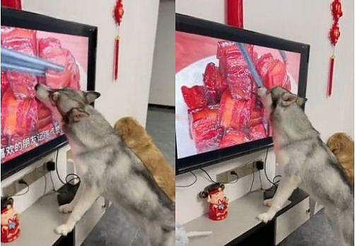 ഒരു ടെലിവിഷൻ സ്ക്രീനിൽ ഇറച്ചി കണ്ട് കൊതിയടക്കാനാവാതെ അത് നക്കി നോക്കുന്ന നായയെയാണ് വിഡിയോയിൽ കാണാൻ കഴിയുക. “ഇത് വളരെ രുചികരമാണ്,” എന്ന അടിക്കുറിപ്പോടെയാണ് വിഡിയോ ട്വീറ്റ് ചെയ്തിരിക്കുന്നത്. പിൻകാലുകളിൽ കുത്തിനിന്ന് മുൻവശത്തെ കാലുകൾ രണ്ടും ടെലിവിഷൻ സ്റ്റാൻഡിലേക്ക് പൊക്കിപിടിച്ചാണ് സ്ക്രീനിലെ ഇറച്ചികഷ്ണം നായ രുചിച്ചുനോക്കുന്നത്. ഇറച്ചികണ്ടപ്പോൾ കൊതിമൂത്ത് തുടരെ നക്കുകയാണ് നായ.