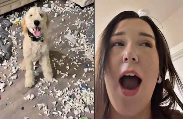 വീട്ടിലേക്ക് തിരിച്ചുവരുമ്പോള് വീടുമുഴുവന് അലങ്കോലപെടുത്തിയതിന്റെ ഉത്തരവാദിയെ തിരയുമ്പോഴാണ്. 'എങ്ങനെയുണ്ട് എന്റെ ക്രിയേറ്റിവിറ്റി' എന്ന് ചോദിക്കുന്ന മട്ടില് നായ ഓടിവന്ന് യുവതിയുടെ മുന്നില് ഇരിക്കുന്നത്. നിലത്തു മുഴുവന് കീഴിനശിപ്പിച്ച് ചിതറിക്കിടക്കുന്ന പേപ്പറുകളും പഞ്ഞിയും. വീട്ടിലേക്ക് കയറി വന്ന് ഇതെല്ലാം കാണുന്ന യുവതിയുടെ ഭാവവും വിഡിയോയില് കാണാം.