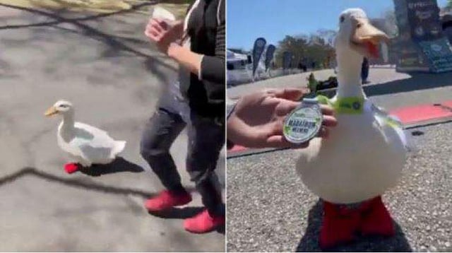 ഫിനിഷിങ് പോയിന്റില് ഒരു യുവതി താറാവിന് വെള്ളം നല്കുന്നത് വീഡിയോയില് കാണാം. പിന്നാലെ മാരത്തണ് വിജയിച്ചതിന്റെ മെഡലും താറാവിനെ അണിയിച്ചു. സൂപ്പര് ക്യൂട്ട് വീഡിയോ എന്നാണ് പലരും ദൃശ്യങ്ങളെ വിശേഷിപ്പിച്ചത്. ലക്ഷണക്കണക്കിന് പേരാണ് ഇതിനകം വീഡിയോ കണ്ടത്.