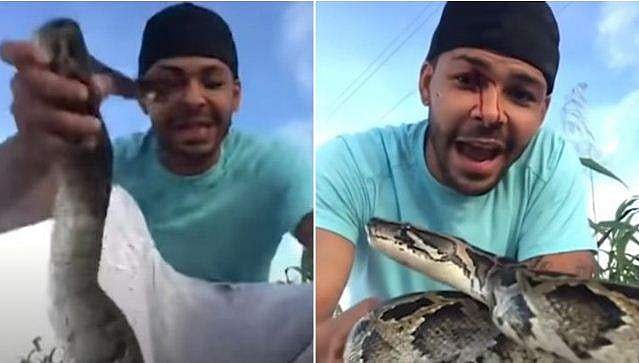 കണ്ണിലേക്ക് ആഞ്ഞു കൊത്തിയത്. അതിനു മുൻപ് പലതവണ പെരുമ്പാമ്പ് നിക്കിന്റെ കൈകളിൽ കടിക്കാൻ ശ്രമിക്കുന്നത് വീഡിയോയിൽ കാണാം.