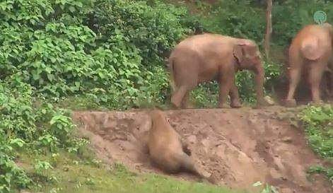 കുട്ടിയാനകളെ പതിവായി ആനക്കൂട്ടത്തിന്റെ ഒത്ത നടുവിലായാണ് കാണാറ്. വലിയ ആനകളുടെ സംരക്ഷണവലയത്തിലായിരിക്കും കുട്ടിയാനകള്‍. അതുകൊണ്ട് തന്നെ ചെറിയതോതിലുള്ള അപകടത്തില്‍പ്പെട്ടാലും കുട്ടിയാനയുടെ രക്ഷയ്ക്ക് എല്ലാവരും ചുറ്റിലും ഉണ്ടാവും. ഇപ്പോള്‍ കാല്‍വഴുതി താഴേക്ക് വീണ കുട്ടിയാനയെ ആനക്കൂട്ടം രക്ഷിക്കുന്ന വീഡിയോയാണ് വ്യാപകമായി പ്രചരിക്കുന്നത്.