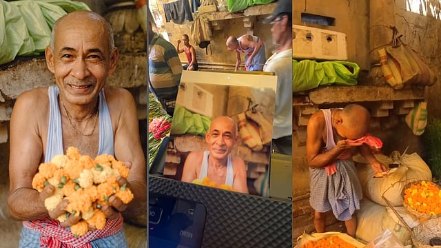 പ്രശസ്ത ഫോട്ടോഗ്രാഫർ സുതേജ് സിങ് പന്നു ആണ് ഫോട്ടോഷൂട്ടിന് പിന്നിൽ. പൂ മാർക്കറ്റിൽ തിരക്കുപിടിച്ചു ചരക്ക് നീക്കുന്നതിനിടെയാണ് ഫോട്ടോഗ്രാഫർ ചിത്രം എടുത്തോട്ടെയെന്ന് വൃദ്ധനോട് അനുവാദം ചോദിക്കുന്നത്. തിക്കിലാണെങ്കിലും അദ്ദേഹം കാമറയ്ക്ക് മുന്നിൽ തന്റെ തനതായ ശൈലിയിൽ പോസ് ചെയ്തു. കുറച്ചു പൂ കയ്യിൽ പിടിച്ചു കൊണ്ട് പോസ് ചെയ്യാമോ എന്ന് ഫോട്ടോഗ്രാഫർ വീണ്ടും ചോദിക്കുന്നുണ്ട്. വൃദ്ധൻ പുഞ്ചിരിയോടെ അത് സമ്മതിച്ചു. മിനിറ്റുകൾ നീണ്ട ഫോട്ടോഷൂട്ടിന് പിന്നാലെ അദ്ദേഹം ജോലിത്തിരക്കിലേക്ക് പോവുകയും ചെയ്തു.