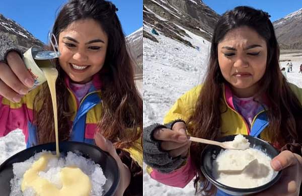 ഒരു ബൗളിലേക്ക് മഞ്ഞ് കോരിയെടുത്ത് ഒരു യുവതി ഐസ്ക്രീം ഉണ്ടാക്കുന്നതാണ് വിഡിയോ. ഐസ് നിറഞ്ഞ ബൗളിലേക്ക് കണ്ടെന്സ്ഡ് മില്ക്ക് ഒഴിക്കും. ഇതിലേക്ക് അല്പം വാനില എസന്സും ചേര്ക്കും. എല്ലാം നന്നായി മിക്സ് ചെയ്ത ശേഷം രുചി നോക്കുന്നതും വിഡിയോയിലുണ്ട്. എന്നാല് സംഭവം ഐസ്ക്രീം പോലെയല്ല ഐസ്ഗോള പോലെയാണ് തോന്നുന്നതെന്നാണ് ഇവര് പറഞ്ഞത്.