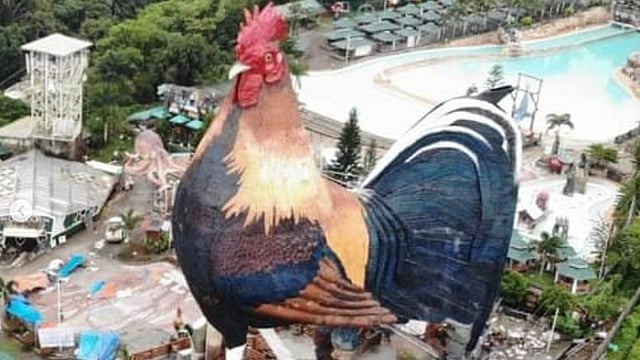 ചുറ്റുമുള്ള കെട്ടിടങ്ങളെ നിഷ്പ്രഭമാക്കിക്കൊണ്ട് ഒരു പൂവൻ കോഴി തല ഉയർത്തി നിൽക്കുകയാണ്. ഫിലിപ്പീൻസിലെ നെഗ്രോസ് ഓക്സിഡന്റൽ പ്രവിശ്യയിൽ നിന്നാണ് ഈ കൗതുക കാഴ്ച. കോഴിയുടെ ആകൃതിയിൽ 114 അടിയിലധികം ഉയരത്തിൽ നിർമിക്കപ്പെട്ട ഒരു പടുകൂറ്റൻ കെട്ടിടമാണ് ഇത്. വലിപ്പം കൊണ്ട് ഈ റൂസ്റ്റർ ബിൽഡിങ് ഗിന്നസ് ബുക്കിൽ ഇടം നേടിയിരിക്കുകയാണ്.