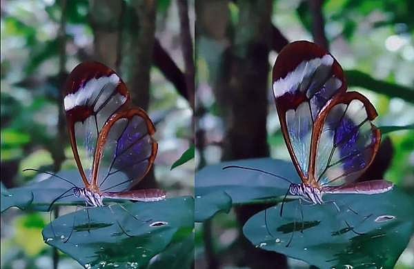 കണ്ണാടി പോലെ ചിറകുകളും ഉടലുമുള്ള ഇവയെ തെക്കേ അമേരിക്കയുടെ മധ്യ-വടക്കന് പ്രദേശങ്ങളിലാണ് കൂടുതലായും കാണപ്പെടുന്നത്. അത്യപൂര്വമായി കാണപ്പെടുന്ന കണ്ണാടി ശലഭത്തിന്റെ വെറും ആറ് സെക്കന്റുകള് നീളുന്ന വിഡിയോ ക്സിലൂടെയാണ് പങ്കുവെച്ചിരിക്കുന്നത്. വര്ണ്ണങ്ങളില്ലെന്ന് പറഞ്ഞ് അത്ര ചില്ലറക്കാരനല്ല കണ്ണാടി ശലഭങ്ങള്.