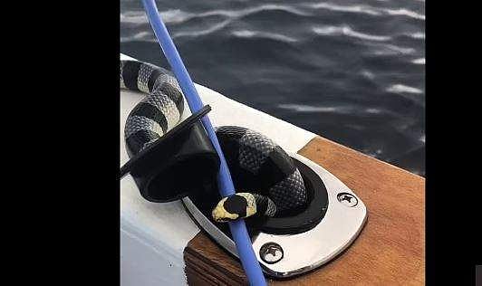 ബാൻഡഡ് സീ ക്രേയ്റ്റ് വിഭാഗത്തിൽപ്പെട്ട വിഷപാമ്പാണ് ബോട്ടിലേക്ക് ഇഴഞ്ഞെത്തിയത്. മത്സ്യബന്ധനത്തിനുപയോഗിക്കുന്ന ഫിഷിങ് റോഡ് സ്ഥാപിച്ചിരിക്കുന്ന ഭാഗത്തായി പാമ്പ് നിലയുറപ്പിക്കുകയും ചെയ്തു. റോഡ് ഹോൾഡറിൽ ചുറ്റിപ്പിടിച്ച നിലയിൽ തല പുറത്തേക്കു നീട്ടിയായിരുന്നു പാമ്പിന്റെ കിടപ്പ്. എന്നാൽ ഉഗ്രവിഷമുള്ള പാമ്പ് തൊട്ടടുത്തുണ്ടെന്നകാര്യം വകവയ്ക്കാതെ ഇയാൾ മീൻപിടുത്തം തുടർന്നു.