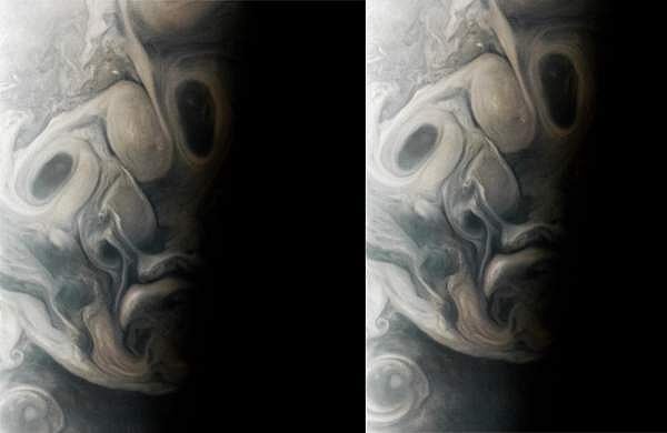 വ്യാഴത്തിന്റെ പ്രക്ഷബ്ധമായ അന്തരീക്ഷം കാരണമാകാം മേഘങ്ങൾ ഇത്തരത്തിൽ ഒരു രൂപമുണ്ടാക്കാൻ കാരണമെന്നാണ് വിലയിരുത്തൽ. വ്യാഴത്തിന്റെ രാത്രിയും പകലും തമ്മിലുള്ള വിഭജനമാണിത്. ഈ പ്രദേശത്തെ സങ്കീർണ്ണമായ ഭൂപ്രകൃതിയും സവിശേഷതകളും ചിത്രത്തിൽ അറിയാം.
