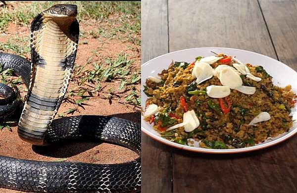 ചേര തിന്നുന്ന നാട്ടിൽ ചെന്നാൽ നടുകഷ്ണം നോക്കി തിന്നണമെന്നൊരു പഴഞ്ചൊല്ല് കേട്ടിട്ടില്ല, അതു പോലെയാണ് തായ്ലാൻഡിൽ ചെന്നാൽ. പക്ഷെ ഇവിടെ ചേരയല്ല, രാജവെമ്പാലയാണ് സ്പെഷ്യൽ. അവിടുത്തെ പ്രധാന സ്ട്രീറ്റ് ഫുഡ് വിഭവങ്ങളിൽ ഒന്നാണ് ഇത്.