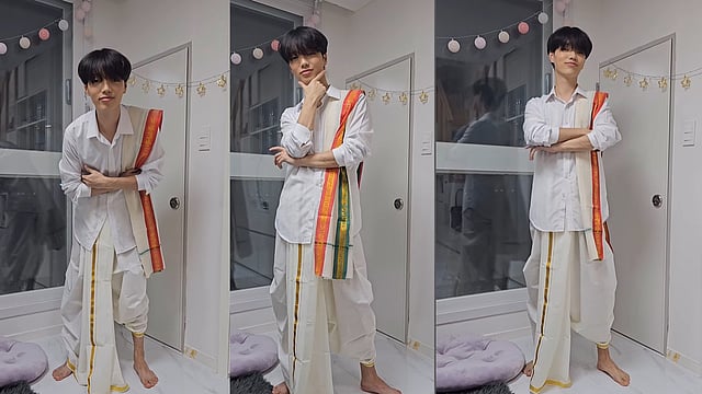 ഇന്സ്റ്റഗ്രാം ഇന്ഫ്ലുവന്സറായ ബേ യൂന്-സോ ആണ് ഇന്ത്യന് വസ്ത്രമണിഞ്ഞ് ഇന്ത്യക്കാരുടെ മനം കവരുന്നത്. ദക്ഷിണേന്ത്യൻ വസ്ത്രമായ ധോത്തിയും കുര്ത്തയും തോളിൽ വീതിക്കരയുള്ള ദുപ്പട്ടയുമാണ് ബേ യൂന് സോയുടെ വേഷം. യുവാവ് ധോത്തിയും കുര്ത്തയും ധരിക്കുന്നതും വിഡിയോയില് കാണാം.
