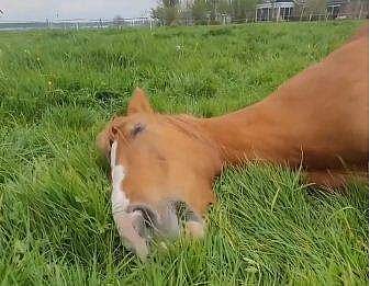എഴുന്നേറ്റു നിന്ന് പുല്ലു തിന്നാനൊന്നും 'മാർലെ' എന്നു പേരുള്ള കക്ഷി മിനക്കെടുന്നില്ല. പച്ചപ്പുല്ലു നിറഞ്ഞ സ്ഥലത്ത് അലസമായി കിടന്നുകൊണ്ടാണ് കുതിരയുടെ പുല്ലു തീറ്റ. ഇങ്ങനെ ഒരു മടി ആദ്യമായാണ് കാണുന്നതെന്ന് വീഡിയോക്ക് താഴെ ചിലർ അഭിപ്രായപ്പെട്ടു.