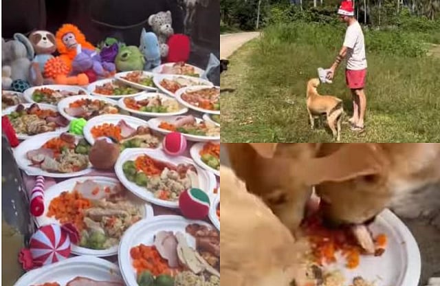 ക്രിസ്മസിന് പ്രിയപ്പെട്ടവരെ വീട്ടിലേയ്ക്ക് ക്ഷണിക്കുന്നതും വിരുന്നൊരുക്കുമൊന്നും പുതുമയല്ല. സ്നേഹത്തിൻ്റെയും പ്രത്യാശയുടെയും ഉത്സവമാണ് ക്രിസ്മസ് എങ്കിലും സ്വന്തമായി വീടു പോലുമില്ലാത്തവരെ കുറിച്ച് അന്ന് ഓർക്കുന്ന എത്ര പേരുണ്ട്? സത്രത്തിൽ ഇടം ലഭിക്കാതെ പുൽക്കൂട്ടിൽ പിറന്നു വീണ യേശുക്രിസ്തുവിന്റെ ജന്മദിനം സമുചിതമായി ആഘോഷിക്കാൻ തെരുവിൽ കഴിയുന്ന നായ്ക്കൾക്ക് വിരുന്നൊരുക്കിയിരിക്കുകയാണ് ഒരു യുവാവ്.