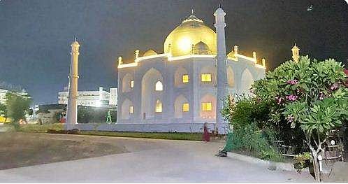 മധ്യപ്രദേശിലെ ബര്ഹാന്പൂര് സ്വദേശിയാണ് ഭാര്യയ്ക്ക് താജ്മഹല് മോഡലില് ആഡംബര മണിമാളിക പൂര്ത്തിയാക്കിയത്. മൂന്നു വര്ഷം കൊണ്ടാണ് താജ്മഹല് മാളിക ഇയാള് പൂര്ത്തിയാക്കിയത്. വന് വെല്ലുവിളികളാണ് മാളിക പൂര്ത്തിയാക്കുന്നതിന് അഭിമുഖീകരിക്കേണ്ടി വന്നതെന്ന് ഇയാള് പറയുന്നു.