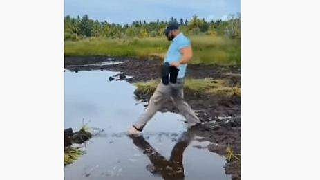 ചതുപ്പില് വച്ച് ആദ്യം ചെരിപ്പ് അഴിച്ചുവെച്ച് മുന്നോട്ടുനീങ്ങാന് ശ്രമിക്കുന്നതിനിടെയാണ് താഴ്ന്നുപോകുന്നത്. ഞൊടിയിടയില് മാര്ട്ടിന് ലൂയിസ് വെള്ളത്തില് മുങ്ങിപ്പോകുന്നത് കാണാം. തുടര്ന്ന് കരയ്ക്ക് കയറുന്നിടത്താണ് വീഡിയോ അവസാനിക്കുന്നത്.