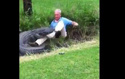 മുതലയെ പിടികൂടാന്‍ ശ്രമിക്കുന്ന ഒരു വയോധികന് സംഭവിക്കുന്ന ദൃശ്യങ്ങളാണ് വൈറലാകുന്നത്